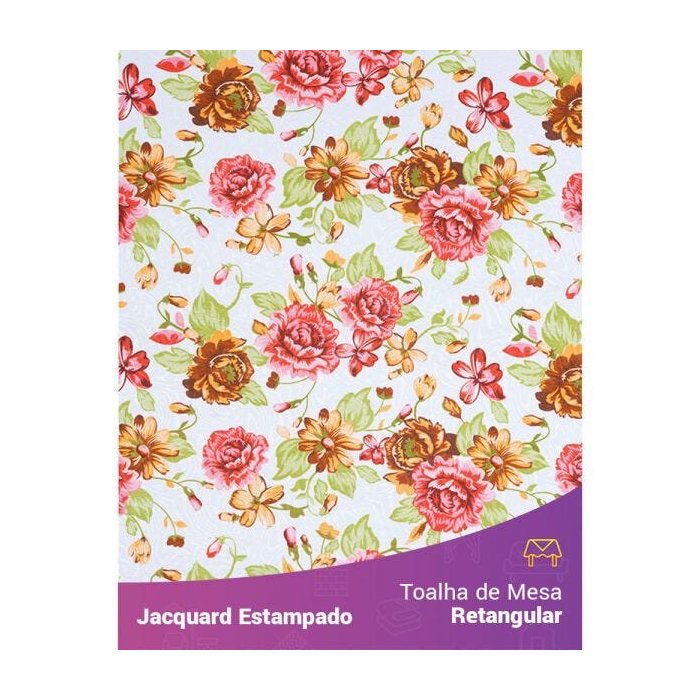 Toalha de Mesa Retangular em Tecido Jacquard Estampado Floral Rosa e Laranja 1,40m X 2,10m