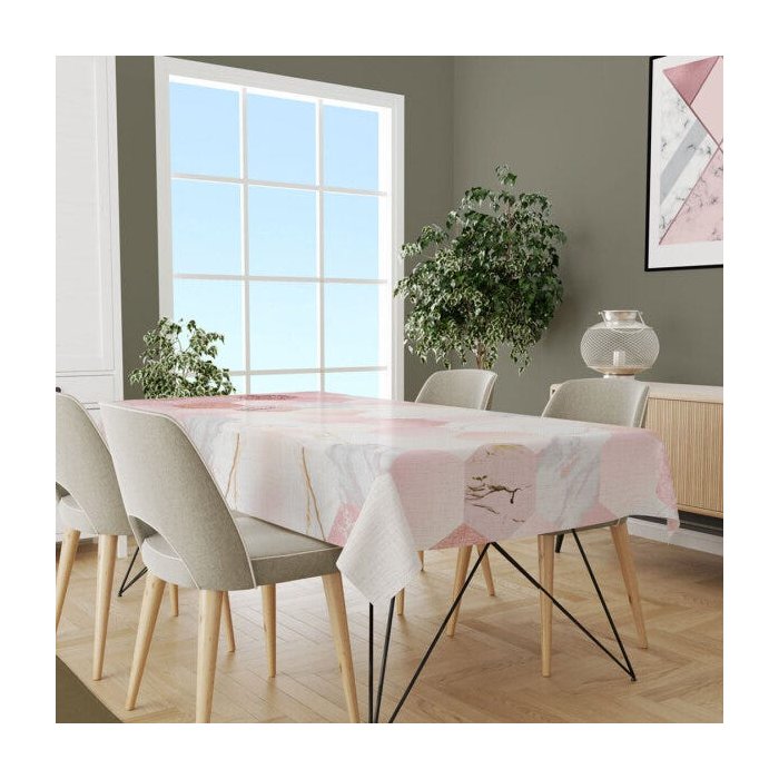 Toalha de Mesa Retangular Para 6 Lugares hexagonal Rosa 1.45m x 2.20m -