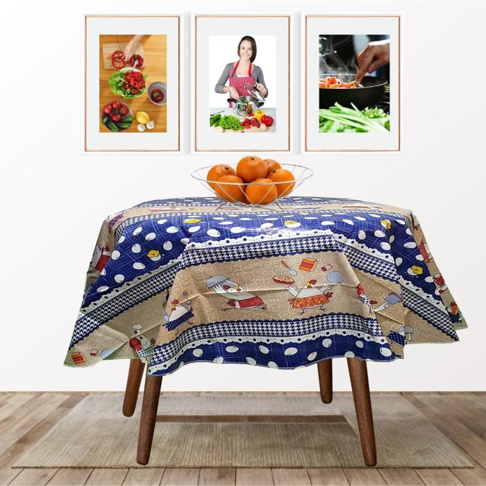 Toalha de Mesa Termica REDONDA - GALINHA AZUL - 1,35m Diâmetro * Mesa REDONDA *- PVC - 4 cadeiras -