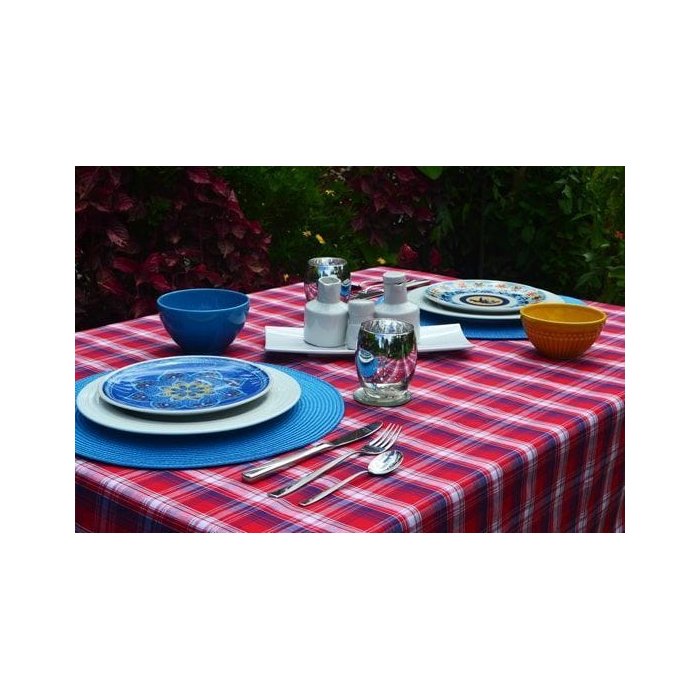 Toalha de Mesa Xadrez Vermelha e Azul Retangular 8 Lugares - 1,30 - 1,90