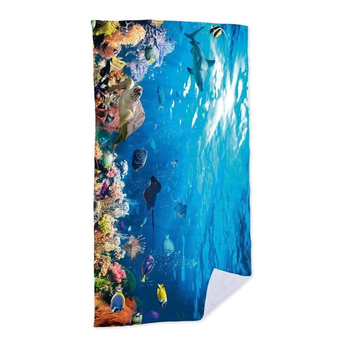 Toalha de Praia - Fundo do Mar Com Tartaruga e Tubarão -