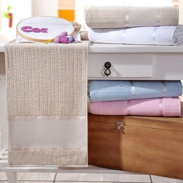 A Linha de Toalha Ponto Russo foi desenvolvida para quem ama artesanato e bordado. Elas foram confeccionadas em tecido 100% Algodão, possuem o corpo Jacquard canelado, fio retorcido, um toque macio e suave e uma barra de tecido mais fechado que é ideal para bordar o ponto russo e pinturas