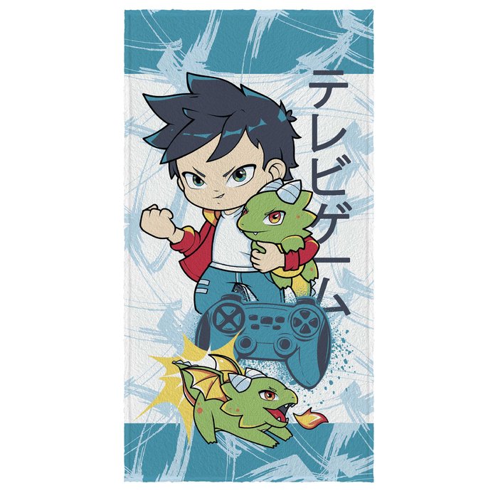 A toalha de banho da coleção Anime ilustra as aventuras do corajoso personagem e seu companheiro dragão. Seu tecido felpudo possui ótima absorção e durabilidade, além de contar com a exclusiva qualidade da felpa que não desfia. É a magia da animação entrando na rotina dos pequenos.