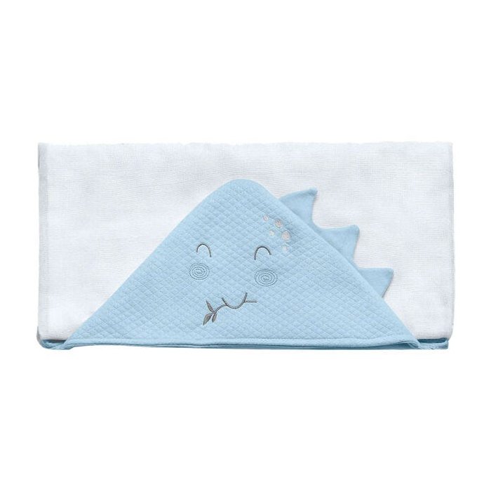 Toalha Fralda Infantil Hug com Capuz de Centro Meus Dinos - 87 x 88 cm - Azul