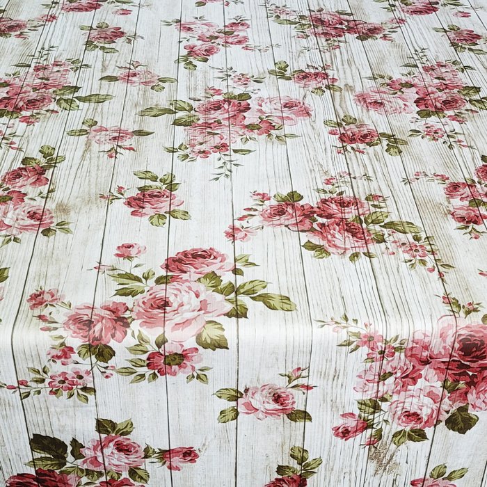 TOALHA DE MESA FLANELADA PVC IMPERMEÁVEL ROSAS WOOD RETANGULAR 1,40X2,20M