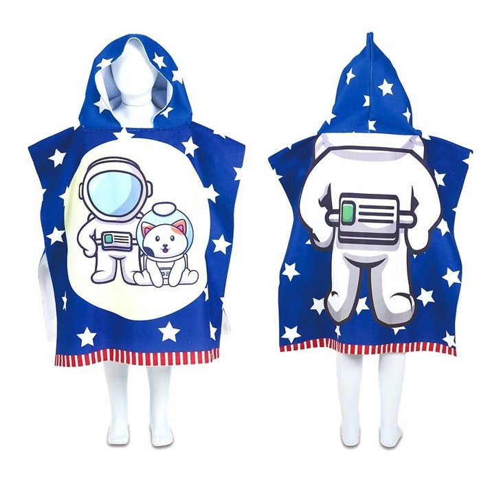 Toalha Poncho de Praia Piscina Infantil com Capuz Astronauta Azul