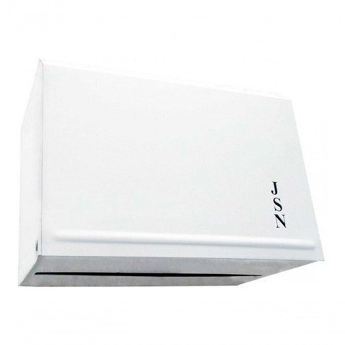 Produzido em chapa 0,6mm de aço carbono 1020 e acabamento pintura eletrostática branca (epóxi). O sistema de fechamento é feito através de fechadura em plástico ABS, que mantém o produto trancado, evitando, assim o furto do papel, bem como a abertura indevida da tampa do suporte, possui visor para controle da reposição do papel.