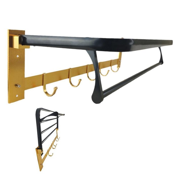 Toalheiro Suporte Varal Roupa Porta Toalha Prateleira Gancho Preto e Dourado