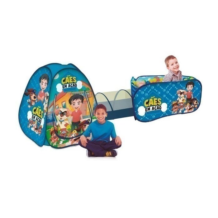 Toca Barraca com Tunel 3 Em 1 com 100 Bolinhas Cães Em Ação