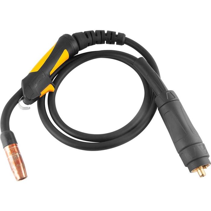Tocha MIG/MAG 20 metros para alumínio TMV 300 VONDER<br>Possui corpo (micropistola) com isolação externa de borracha, bocal com parede espessa e isolação integrada, além de gancho para pendurar o equipamento.<br>Conteúdo:<br>1 Tocha MIG/MAG. Acompanha: 1 bico 0,8 mm e 1 bico 1,0 mm.<br>Modelo: TMV 300 | Capac. corrente (A)/fator de trabalho (%) misturas: 260 A 60% | Capac. corrente (A)/fator de trabalho (%) CO2: 300 A 60% | Comprimento: 2,0 m | Tipo de conector: Euroconector | Diâmetro do arame: 0,8 mm a 1,6 mm | Refrigeração: Não | Massa aproximada (peso) (kg): 2.3 kg