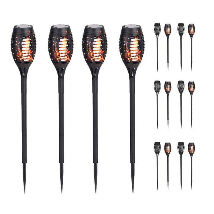 Tochas Luminárias Solar 16 Unidades Fogo Chama Espeto 12 Leds Balizador Jardim Lual Eventos