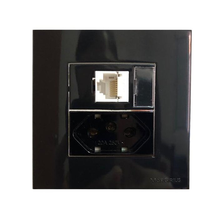 Tomada 3 Pinos 20a + Rede RJ45 Cat5e Preto Móvel Marmore Drywall Gesso Granito Móveis Pedra Embutir