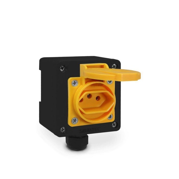 Tomada + Caixa Preta Padrão Brasileiro 2p+t 20a de Sobrepor ou Trilho Din Amarelo