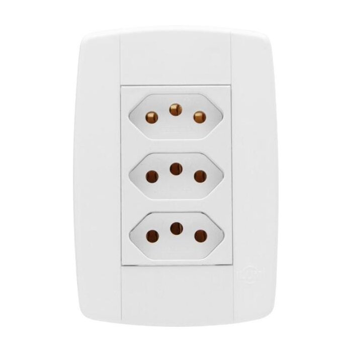 Tomada Elétrica Tripla Completa Branca 10A Linha Lev - Ilumi
