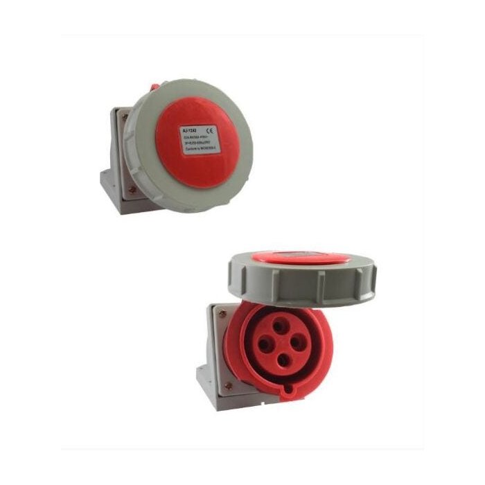 Tomada industrial de sobrepor femea 3p+t 6h 380vac 32a vermelho ip67 – aj1242