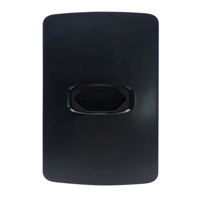 Tomada Padrão 10A com Placa 4x2 Horizontal Gracia Maxx Alumbra Preto