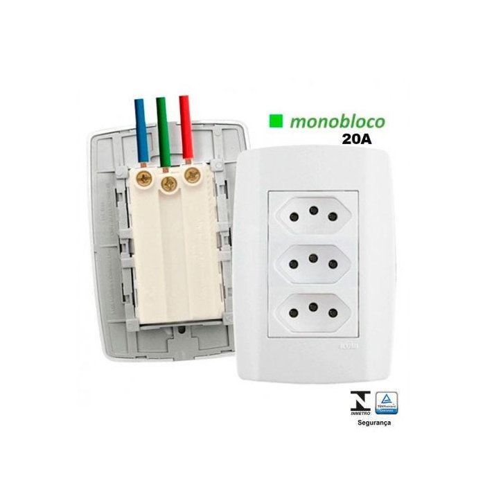 Tomada Tripla Monobloco 20A 250V Ilumi Lev-Linha Modular - Caixa com 10 unidades