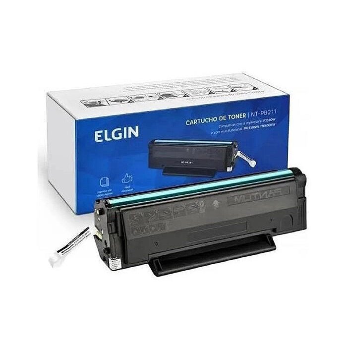 Toner Pantum Nt-pb211 Elgin 1600pag P2500w M6550nw M6600nw Cartucho de Toner PB211 para utilização em equipamentos Elgin P-2500W, M-6550NW, M-6600N. Rende em média 1.600 páginas considerando 5% de cobertura no papel A4. Toner que oferece excelente qualidade de impressão. TONER NAO RECARREGÁVEL. DIMENSOES DO PRODUTO ALTURA:?12.2 centímetros LARGURA: 15 centímetros COMPRIMENTO: 35 CENTIMENTROS