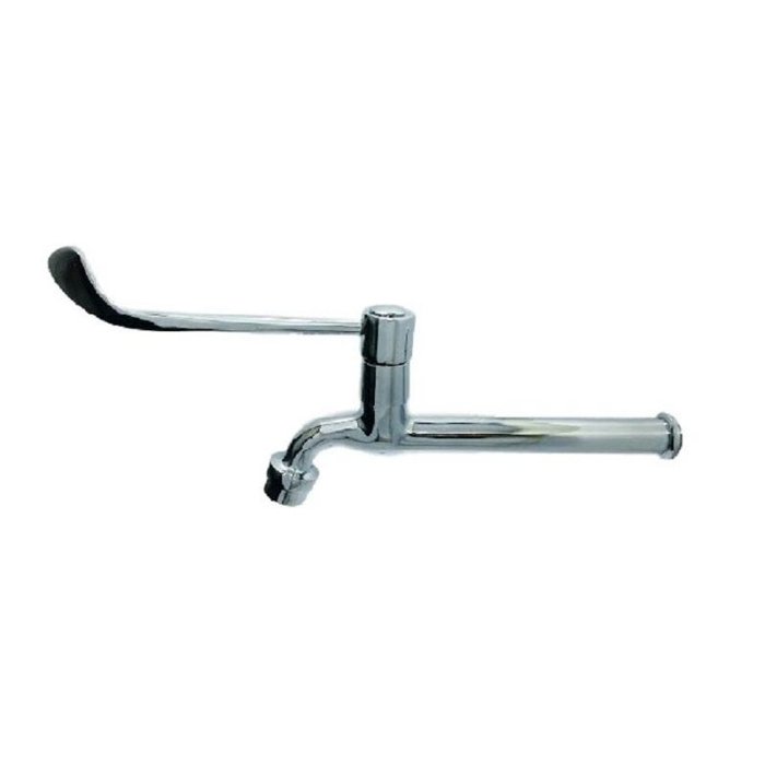 Torneira Alavanca Clinica para parede com 18cm Torneira com abertura e fechamento através de movimento lateral do cotovelo proporciona higiene e evita a contaminação cruzada. Fabricada em Metal Cromado e possui bico arejador. Alavanca maciça e não machuca o ante braço Ideal para clinicas, laboratórios, consultórios, restaurantes e hospitais.
