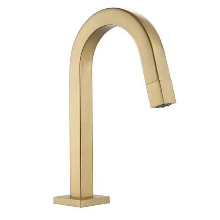 Torneira Banheiro Lavatório Quadrada Pratica Metal Dourada Bege