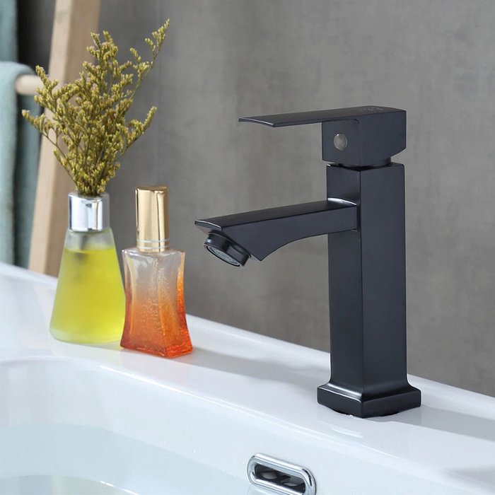 Torneira Banheiro Luxo Monocomando Preto Pia Bancada Moderna Varanda Hotel Restaurante Lavabo Casa L Preto