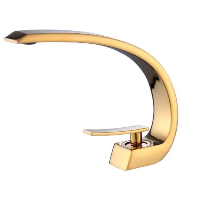 Torneira Banheiro Metal Bancada Curva Dourada Domum - Estilo moderno que harmoniza com diferentes decorações, proporcionando um toque de luxo ao ambiente.