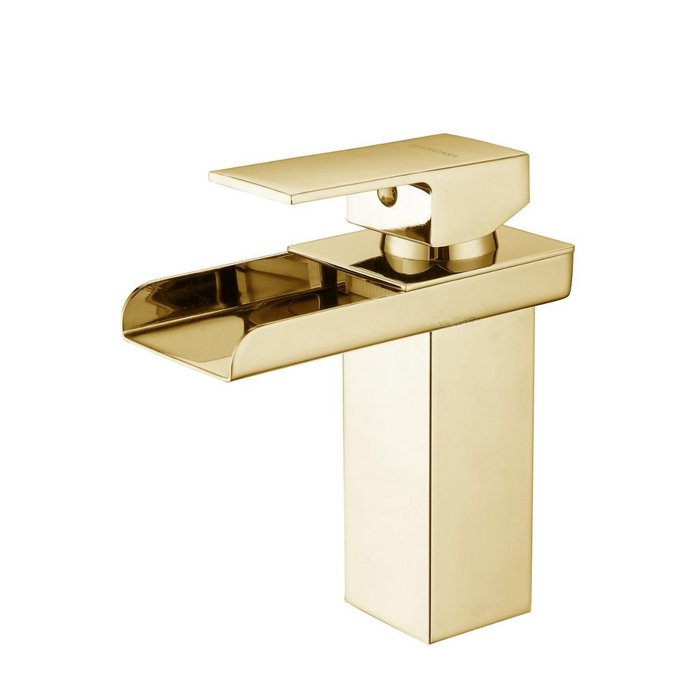 A Torneira monocomando para lavatório calha dourada proporciona uma queda dagua suave e de aparência luxuosa.