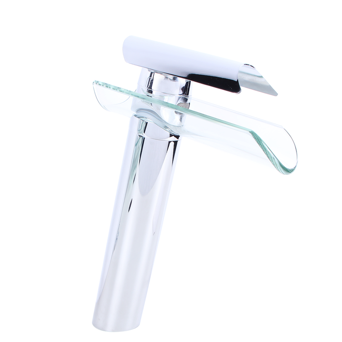 Torneira Banheiro Monocomando Cascata Calha De Vidro Alta Incolor