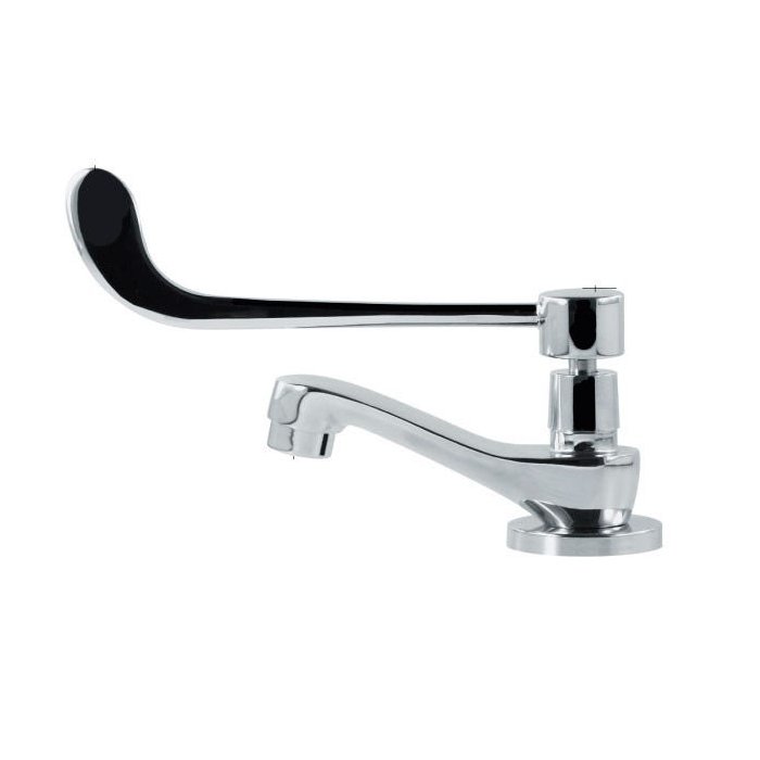 Torneira Clinica De Mesa Bica Baixa Com Alavanca Maciça Acionamento Por Cotovelo. Ideal Para Lavatórios De Clinicas Médicas, Hospitalares Por Evita A Contaminação Cruzada.