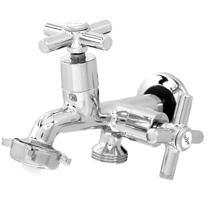 Torneira com duas saídas ideal para ser utilizada em tanque e máquina de lavar roupas;