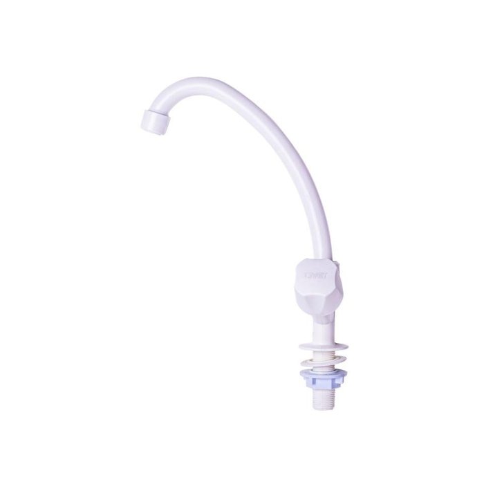 Fabricada em ABS de alta qualidade, um material resistente e durável, essa torneira garantirá uma longa vida útil. Seu acabamento branco é resistente a manchas e sujeiras, facilitando a limpeza e preservando o aspecto impecável da torneira por mais tempo.