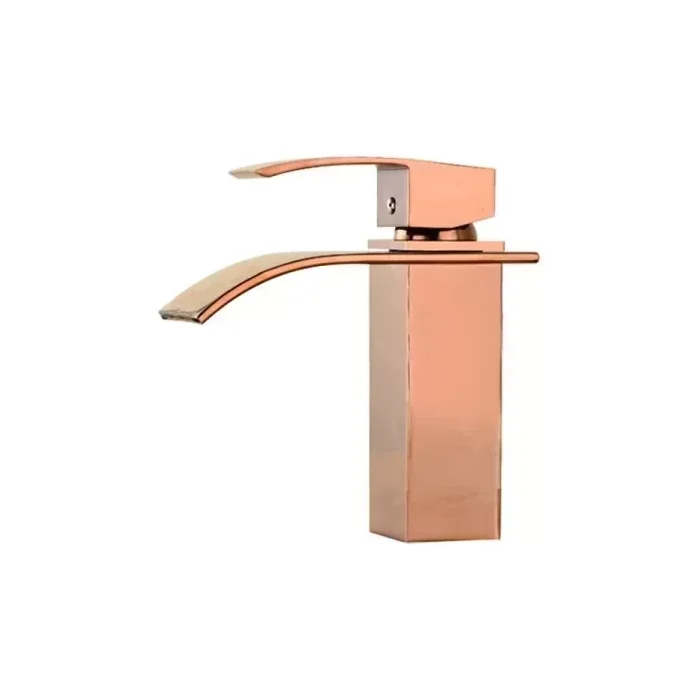 Torneira Cascata Banheiro Misturador Rose Gold Quadrada Tubrax