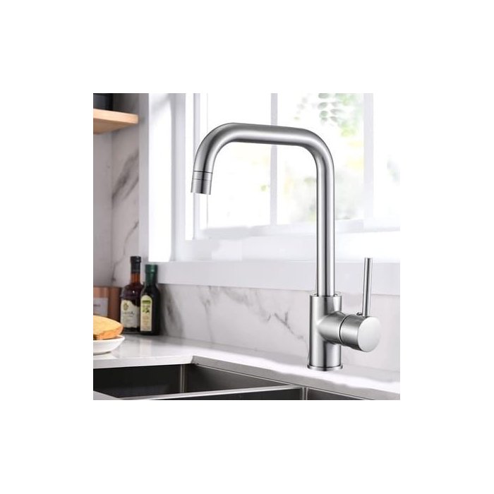 Ela também possui sistema monocomando que garante um acionamento rápido e prático com apenas um toque. Seu acabamento é escovado e simples de limpar, além de combinar com estilos diferentes de cozinha.