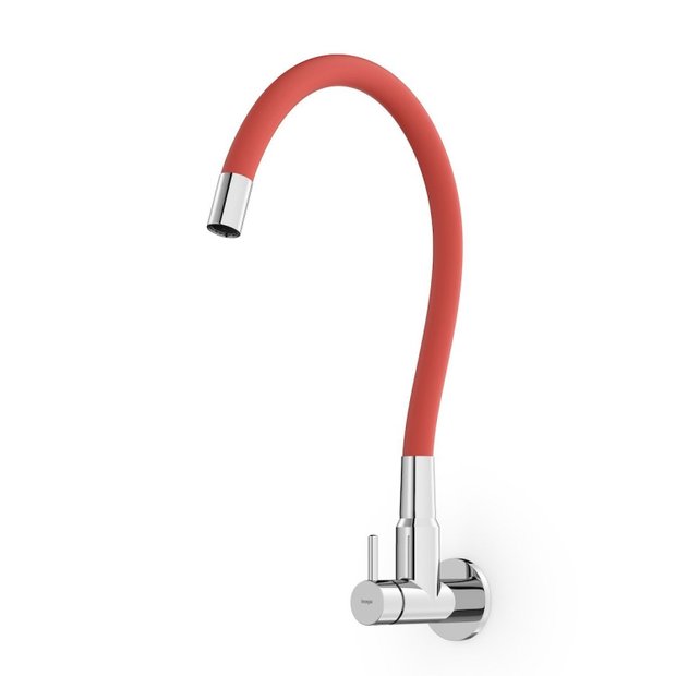 Torneira Cozinha Parede Bica Flexivel Colors Cromado e Vermelho