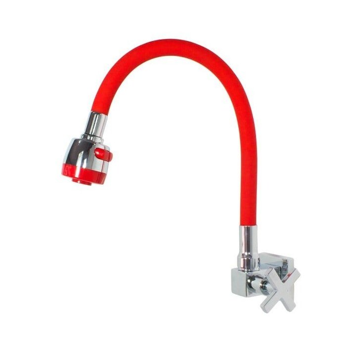 Torneira Cozinha Parede Cruzeta Gourmet Tubo Vermelho Articulável Jato Duplo Ajustável - MK Metais
