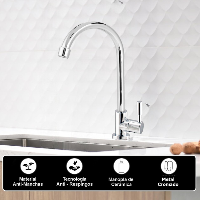 Transforme sua cozinha com a Torneira Cromada de Metal, um item que combina design moderno, funcionalidade e durabilidade.