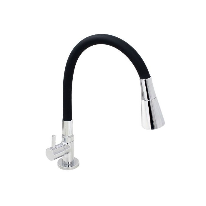 Com design sofisticado, nossa Linha Flexível possui movimento de 360º, bica com tubo interno em inox com revestimento de silicone preto e o arejador cone cromado em ABS, com duplo jato que permite alterar facilmente de jato chuveirinho para jato continuo, material altamente resistente e durável.