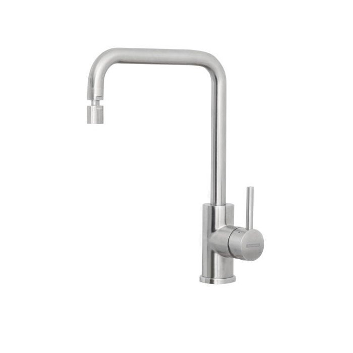 Produto: Misturador Monocomando Tramontina Angolare em Aço Inox com acabamento Scotch Brite e Bica Articulada
