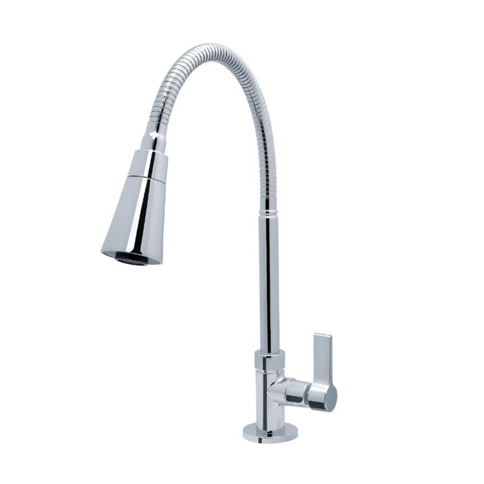 Torneira Flexível para Cozinha e/ou área GourmetTorneira base em metal cromado resistente à corrosão e bica flexível com giro 360ºAcionamento 1/4 de volta, mecanismo cerâmico, proporcionando conforto e praticidade em sua utilização.Produto de alta qualidade e durabilidade, trazendo elegância para um ambiente sofisticado, moderno e descontraído.- Bitola: ½- 2 tipos de jatos- Mínimo de 2 M.C.A- Fixação: bancada/mesa- Itens inclusos: 01 Torneira