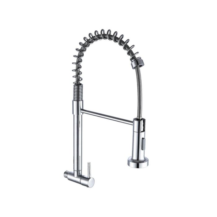Torneira para cozinha em metal modelo gourmet monocomando, projetada para aprimorar sua experiência na cozinha. Fabricada em aço inox cromado. Com design de parede e acionamento em monocomando, oferece praticidade e controle em um único dispositivo.