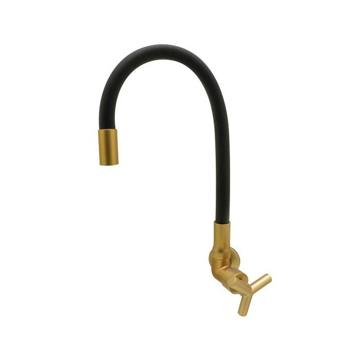 Torneira de Parede Preta e Dourada Flexível Bica Móvel 1/4 de Volta 3068 C55 Preta e Dourada