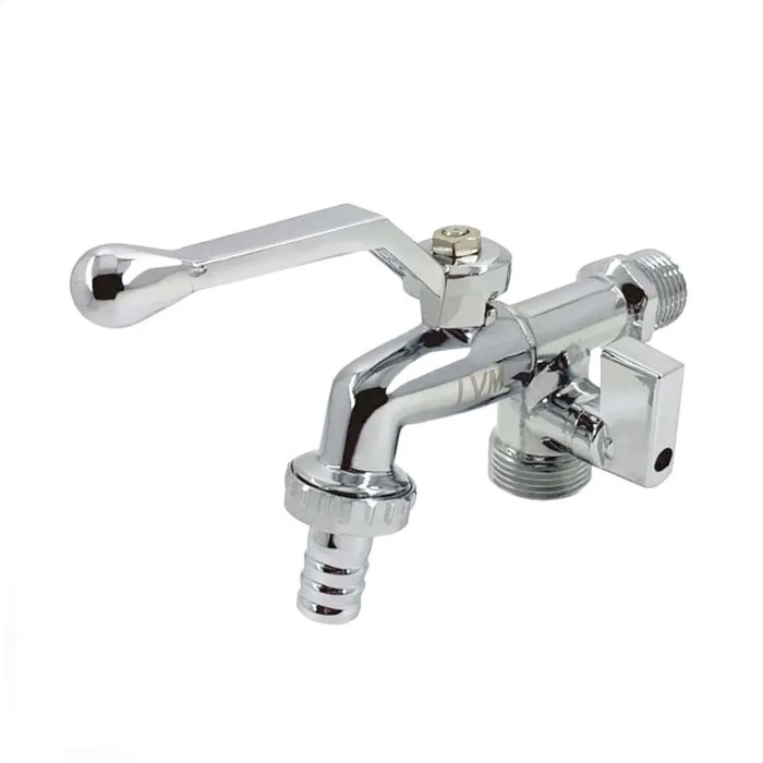 Fabricada em latão com acabamento cromado polido, possui dupla saída padrão 3/4” com fechamento esfera 1/4” de volta;