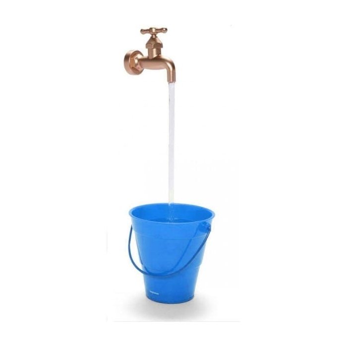 Consiste em uma torneira misteriosamente pairando acima de uma piscina ou bacia com uma fonte infinita jorrando água aparentemente do nada.