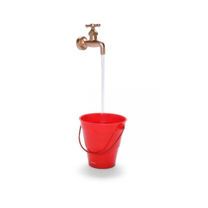 Descrição A fonte da torneira flutuante é uma ilusão inteligente. Consiste em uma torneira misteriosamente pairando acima de uma piscina ou bacia com uma fonte infinita jorrando água aparentemente do nada. A torneira permanece surpreendentemente estável apesar de não ter apoio visível e de onde será que toda esta água vem vindo? Este efeito espetacular é conseguido por um tubo transparente que dá sustentação a estrutura e, ao mesmo tempo, alimentando com água bombeada a partir de baixo. A água sobe através do tubo e sai no topo. Nosso motor é diferenciado e fica isolado acústica e termicamente. Por isso, você não terá acesso ao ele (ou então eventuais pelos dos seus gatinhos). O bebedouro pode e deve ficar ligado direto, durante 24h sem problema algum, apenas é necessário a reposição de água constantemente e não deve funcionar sem água pois pode sofrer danos ao produto. Especificações - Dimensão do balde: 15,5 cm (altura) x 16 cm (largura da boca) - Comprimento do fio: 130 cm Altura até a torneira: 45 cm - Aproximadamente 900 ml - Alem de divertido, serve como objeto de decoração e ajuda a regular a umidade do ambiente