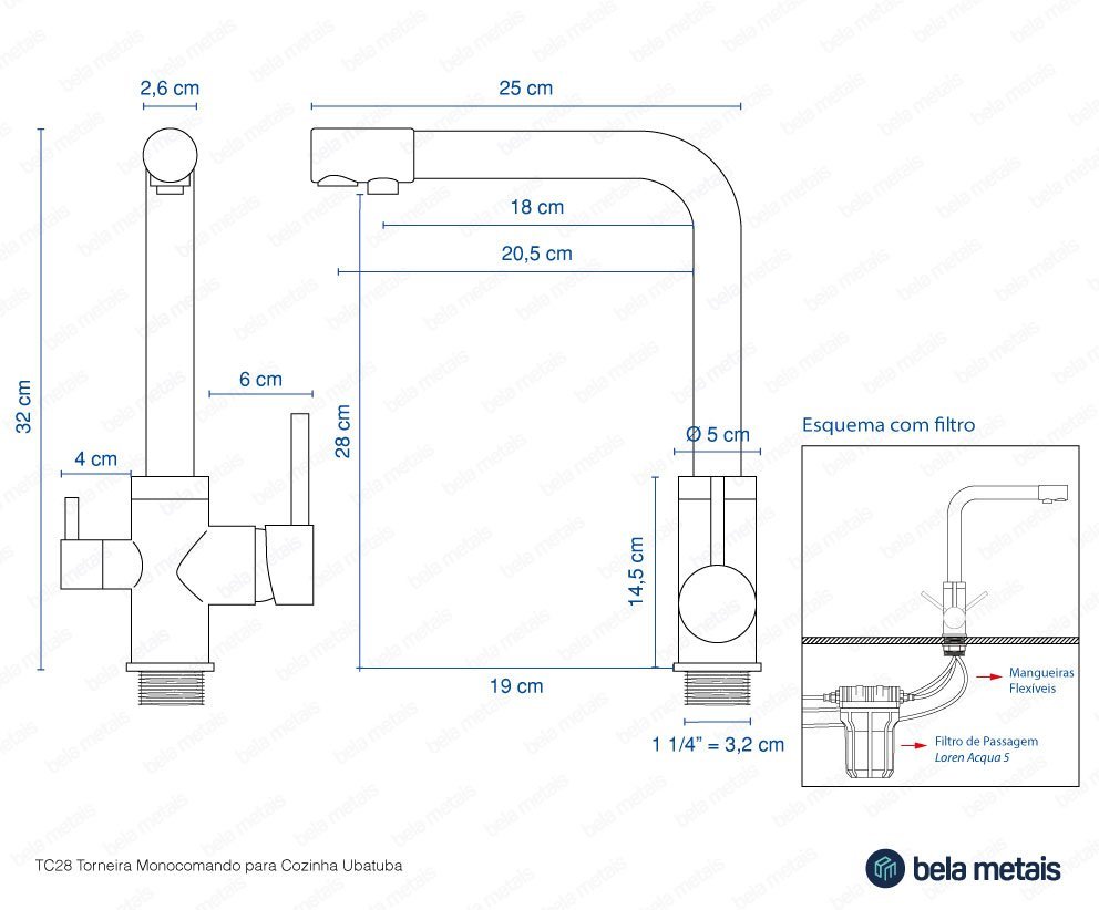 | Informações Complementares (Novo) | O filtro de passagem não acompanha essa torneira, devendo ser adquirido separadamente. |