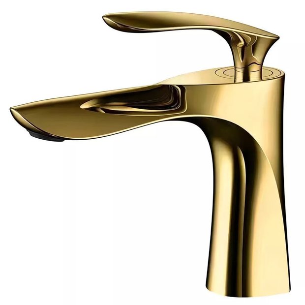Torneira Lavabo Gold Brilhante Misturador Moderna Baixa Luxo Dourado, Gold