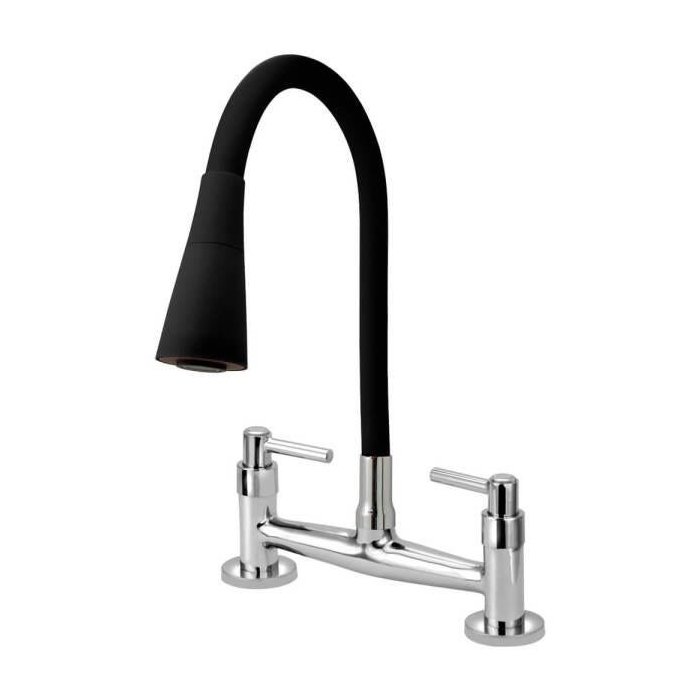 Torneira Misturador Gourmet Flexível Cone Preto MesaPraticidade e charme são a definição deste incrível misturador para cozinha, feito em metal de alta qualidade com acabamento cromado tubo flexível para maior área de alcance do jato de água da torneira, permitindo que você realize seus afazeres com mais praticidade, segue arejador com dupla função: jato contínuo ou chuveirinho de alta resistência.• Inoxidável e não corrosivo• Seu mecanismo cerâmico é de 1/4 de volta• Instalação em mesas de cozinha• Bitola de 1/2• Produto 100% nacional Misturador segue normas ABNT 11535, nas quais fixa condições exigíveis de misturadores de pia de cozinha, tipo mesa/bancada, dotados de dois manípulos, destinados a instalações prediais de água.• Metal Cromado com Revestimento de Borracha.• Altura: 37cm• Largura: 24cm• Comprimento: 23cm• Altura queda d’água: 20cm• Distância do corpo até a queda d’água: 17cm• Distância entre os excêntricos: 20cm• Temperatura da Água: Água Quente e Água Fria• Pressão Mínima e Máxima da Água: 0-14KG F/CM2• Metro de Coluna d`água Mínimo Recomendado: 3 metros • Diâmetro de Furo Para Instalação: DN15• Peso: 1.600grConteúdo da Embalagem: Misturador Gourmet Flexível de Cozinha Mesa Preto 1/4 de volta , 2 Canoplas 1/2 Espelhado, 2 Apoios p/Canopla, 2 Apoios p/ Arruela, 2 Arruelas 1/2.