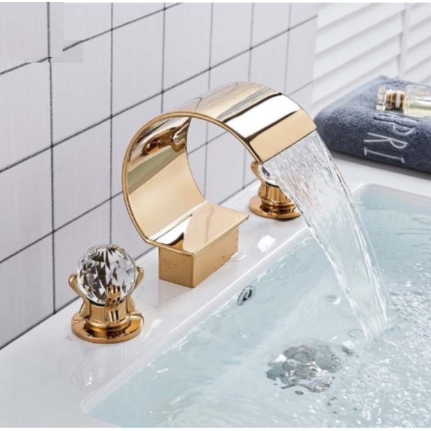 Torneira Misturador Lavabo Banheiro Duplo Comando Fria/Quente Dourado