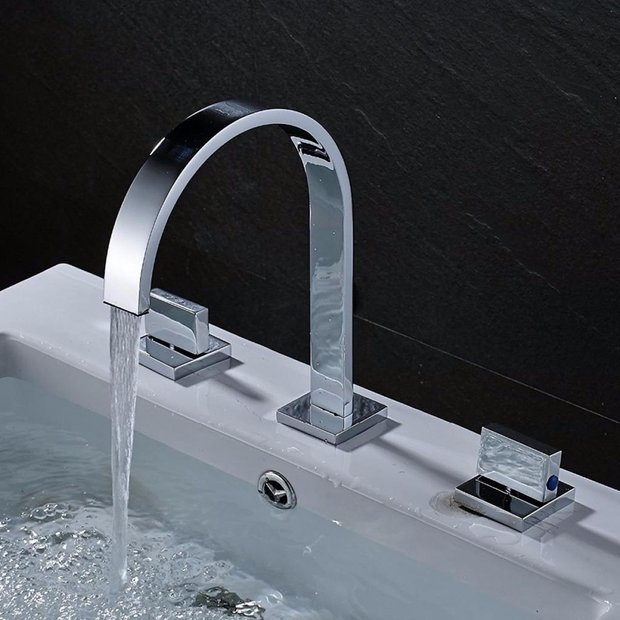 Torneira Misturador Lavabo Banheiro Duplo Comando Fria/Quente Cromado