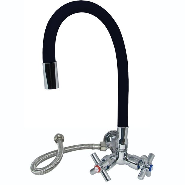 Torneira misturador metal 1/4 de volta com bica flexível colorida para água quente e fria com sistema de flexível na parede para sistema solar e gás sem quebrar parede (mesma usada pela Comgás - Homologada)Torneira Malta corpo metal de 1/2" bica móvel flexível, colorida,emborrachada com arejador fixo. Volante de plástico de engenharia com flexível inox aco 304 de 1/2"X40 CM. Inclui 1 niple de 1/2"X1/2"